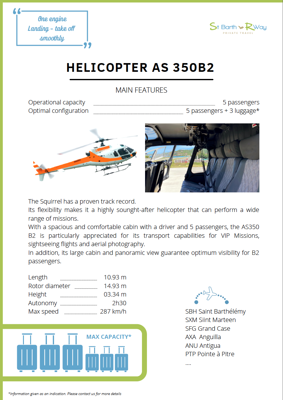 For fast and seamless transfers between the islands, helicopter travel offers the perfect balance of speed, elegance, and exhilaration. Our private helicopter flights connect St. Barths to St. Martin, Anguilla, Antigua, Guadeloupe, and even San Juan in just a matter of minutes. It’s the ideal solution to avoid ferry schedules or limited commercial flight options. Enjoy breathtaking aerial views of turquoise lagoons, rugged coastlines, and hillside villas from the comfort of a modern aircraft, operated by a highly experienced crew. Fast, convenient, and unforgettable, helicopter travel brings a whole new dimension to your Caribbean journey.